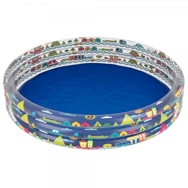 Com estampa de motivos urbanos, a Banheira Inflável é garantia de muita diversão para as crianças. Com capacidade para até 450 litros de água, ela vai refrescar a garotada no verão e garantir muitas risadas! É excelente para uso em casa ou até em praias, o que evita maiores preocupações com o mar ou piscinas. Produzida em vinil resistente, conta com três câmaras de ar independentes, acompanha adesivo de reparo e válvula de deságue. É recomendada para crianças maiores de 3 anos. Atenção! Nunca deixe crianças sozinhas perto da água sem supervisão de um adulto.
