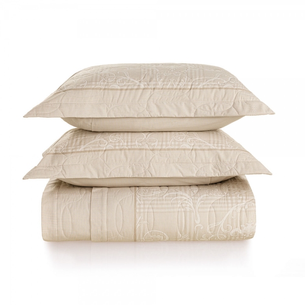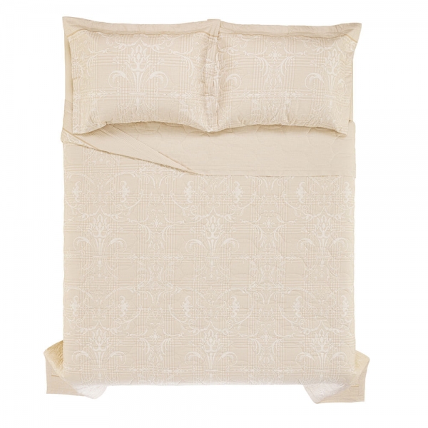 O Cobre Leito Queen Gomes possui o estilo clássico trazendo uma estampa linda e delicada, e com fundo bege. Além da sua beleza, ele lhe garante um conforto excepcional por sua confecção 100% algodão percal 180 fios, acompanha 2 portas travesseiros matelassados com a mesma estampa da colcha, trazendo toque macio e ainda mais delicadeza para seu quarto.