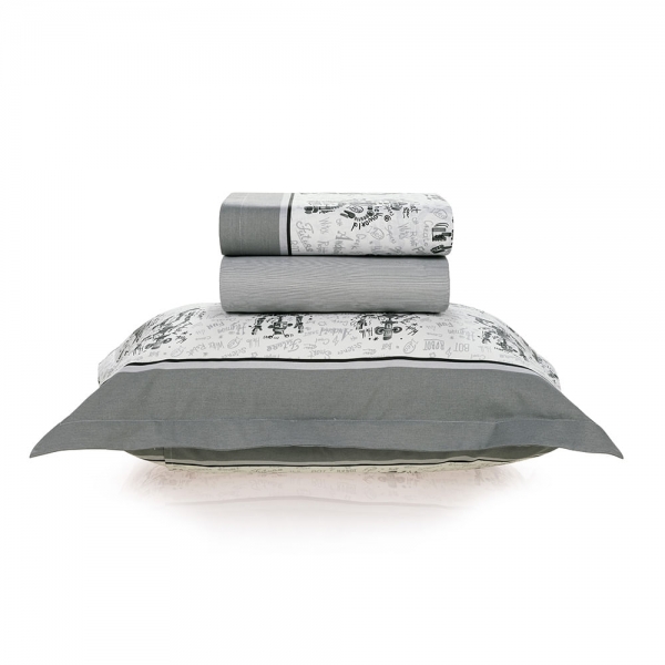 - Acabamento: Percal; Colcha dupla face com cantos quadrados; Porta-travesseiro com 3 abas de 5cm; Estampado ;