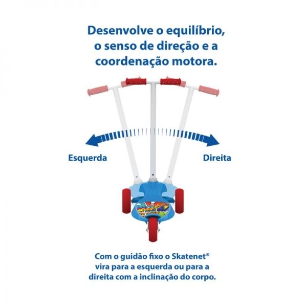 Criança gosta de se divertir, e nessa diversão, o Patinete Skatenet Kid da Bandeirante não pode faltar! Afinal ele é um brinquedo muito divertido para o ar livre e permite a criança curtir toda a adrenalina na brincadeira, seja sozinha ou mesmo na companhia dos amigos. As brincadeiras envolvendo o patinete podem se transformar em uma excelente forma de desenvolver o equilíbrio, a coordenação e a noção espacial das crianças. Com ele os pequenos poderão aprender a conduzir, virar, evitar obstáculos e calcular distâncias sozinhos. O brinquedo é perfeito para as manobras mais radicais! Com o guidão fixo o Skatenet vira para a esquerda ou para a direita com a inclinação do corpo. Possui freio traseiro, rodas largas, base mais larga, ideal para iniciantes, com espaço para a criança apoiar os dois pezinhos com segurança.